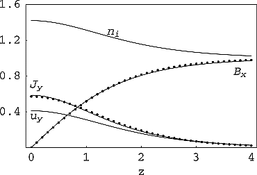 Normalize the density by \(n_1(z=\infty) = 1\) and the magnetic field by \(B_z = 1\).