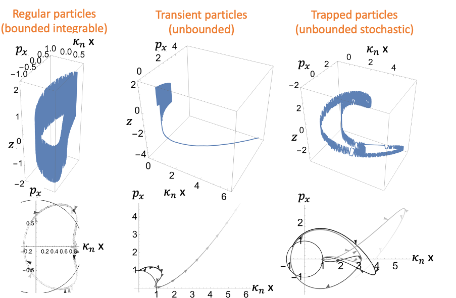 - Two distinct types of particle trajectories in \((z, p_z)\) plane separated by a curve called Separatrix.