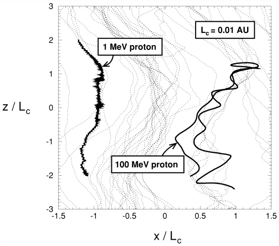 \(B \sim 1/r\) and \(L \sim d_i ~ n^{-1/2} ~ r\) => continuous scattering by current sheets during propagation => higher occurrence rate of current sheets closer to the Sun => ???Large gradual solar energetic particle events???